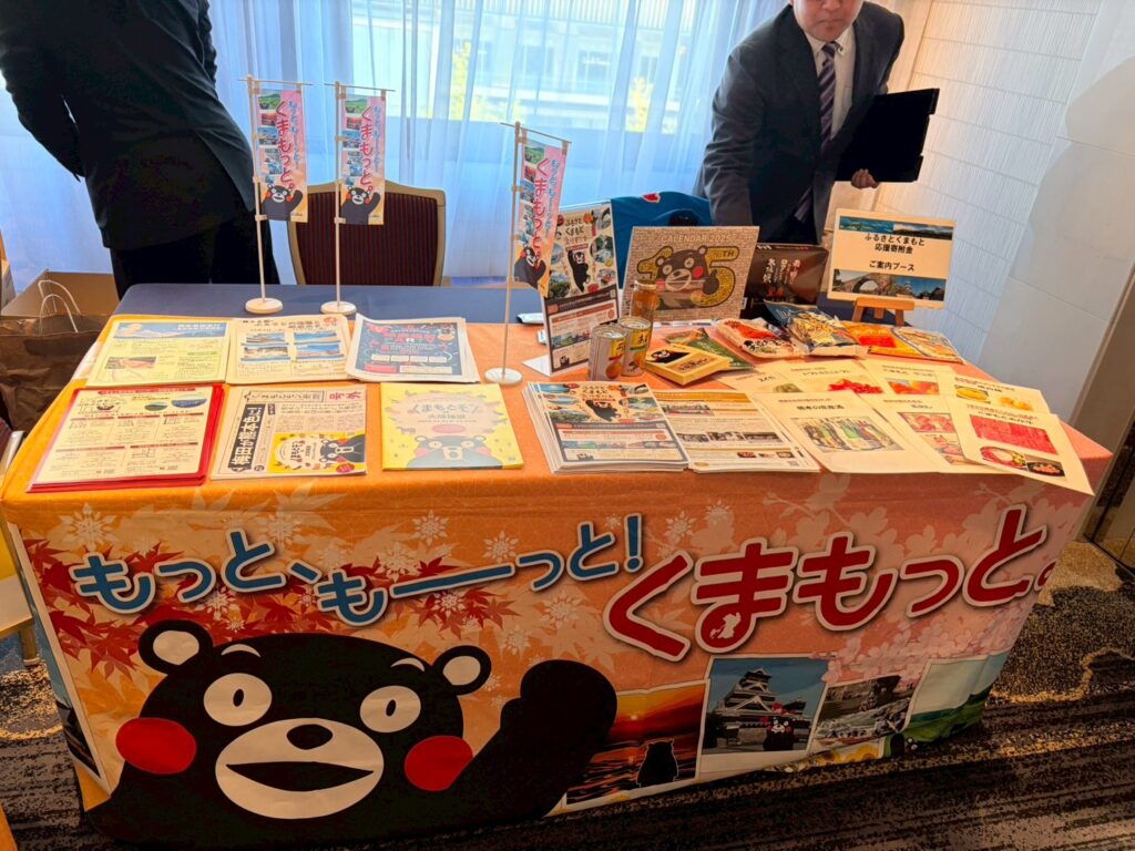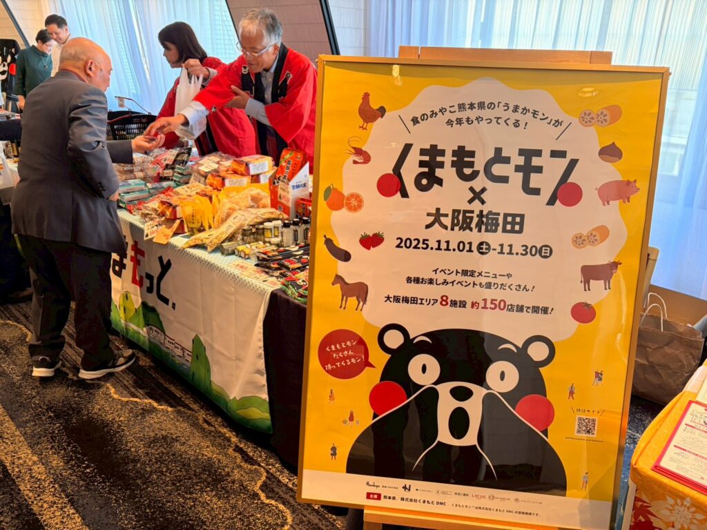 熊本物産の販売コーナーや、11月1日から30日まで開催される「くまもとモン梅田ジャック」のPRコーナーなど賑やかな会場演出でした。