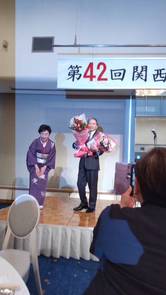 令和7年11月15日(土)にKKRホテル大阪で開催された第42回関西不動会(鹿本高校の同窓会)に、関西江原会から高野副会長が来賓として参加しました。